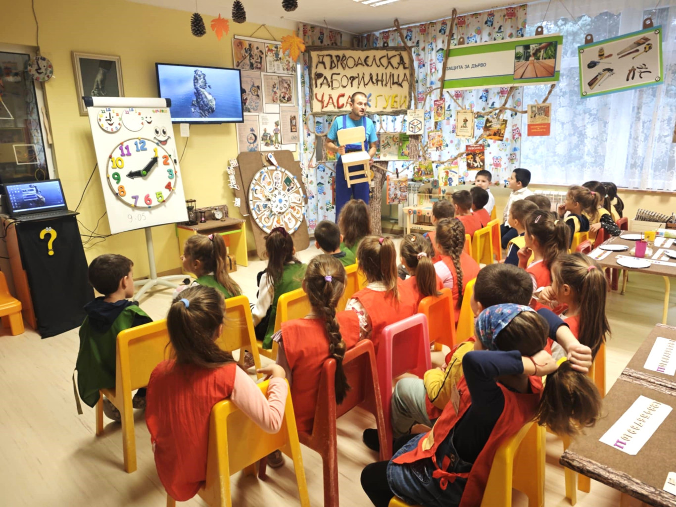 По време на заниманието децата влязоха в ролята на истински производители, декоратори и продавач-консултанти. Те научиха основни понятия за измерване на времето и изработиха свои уникални дървени часовници. Гостите имаха възможност да наблюдават процеса на ръчното производство в различните „цехове“ на работилницата, както и да закупят готови изделия, създадени от малките майстори.
