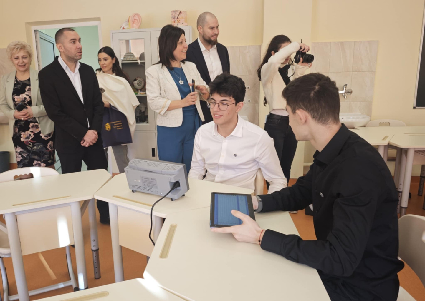 След официалното прерязване на лентата гостите имаха възможност да се запознаят отблизо с възможностите на високотехнологичните кабинети и лично да участват в част от учебните занятия.