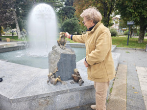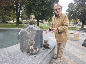 Емблематичната скулптурна композиция с жабките при Водната каскада в центъра на Плевен отново радва и малки, и големи - днес третата жабка бе стабилно укрепена на своето място и е част от веселата компания на останалите две.