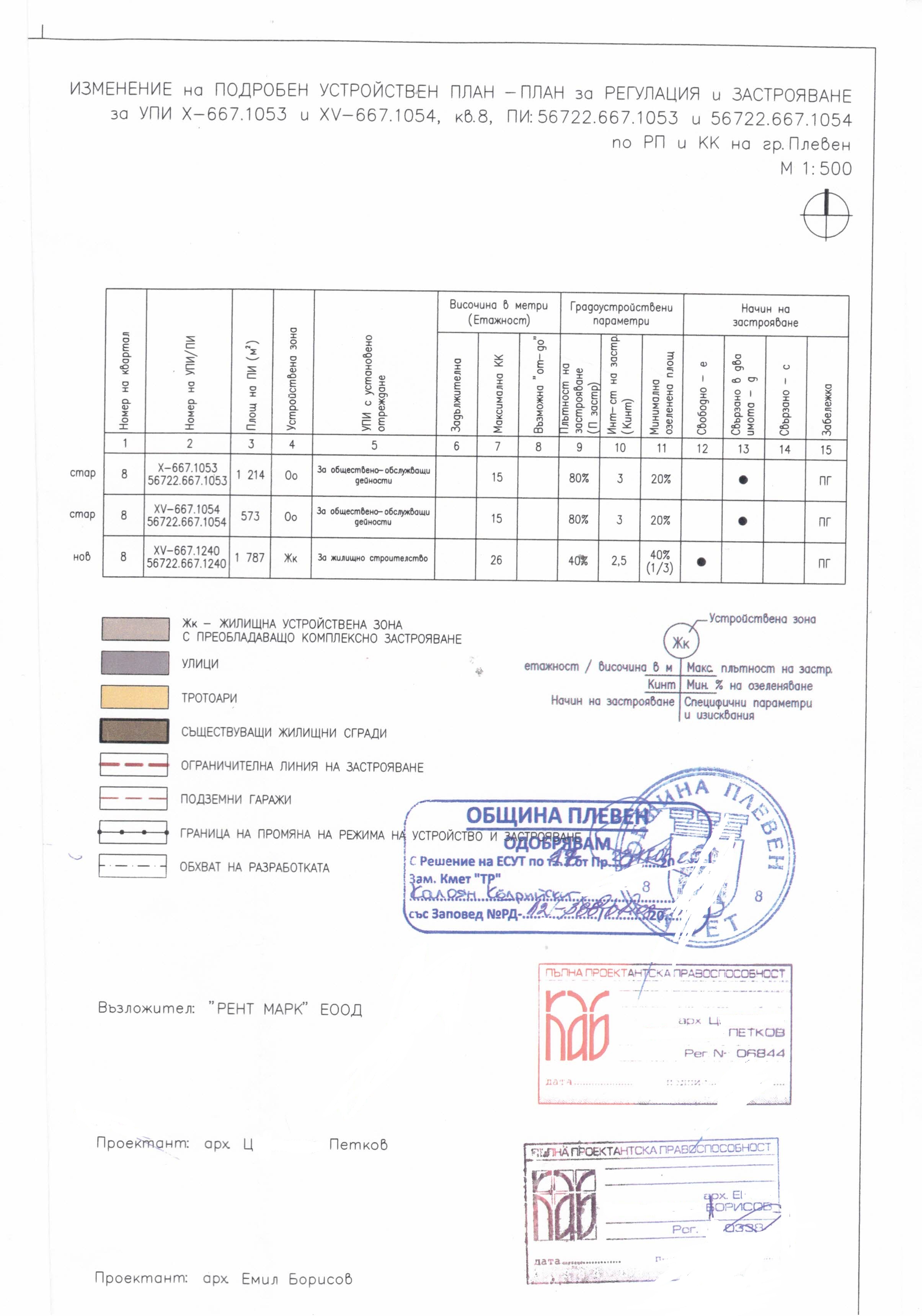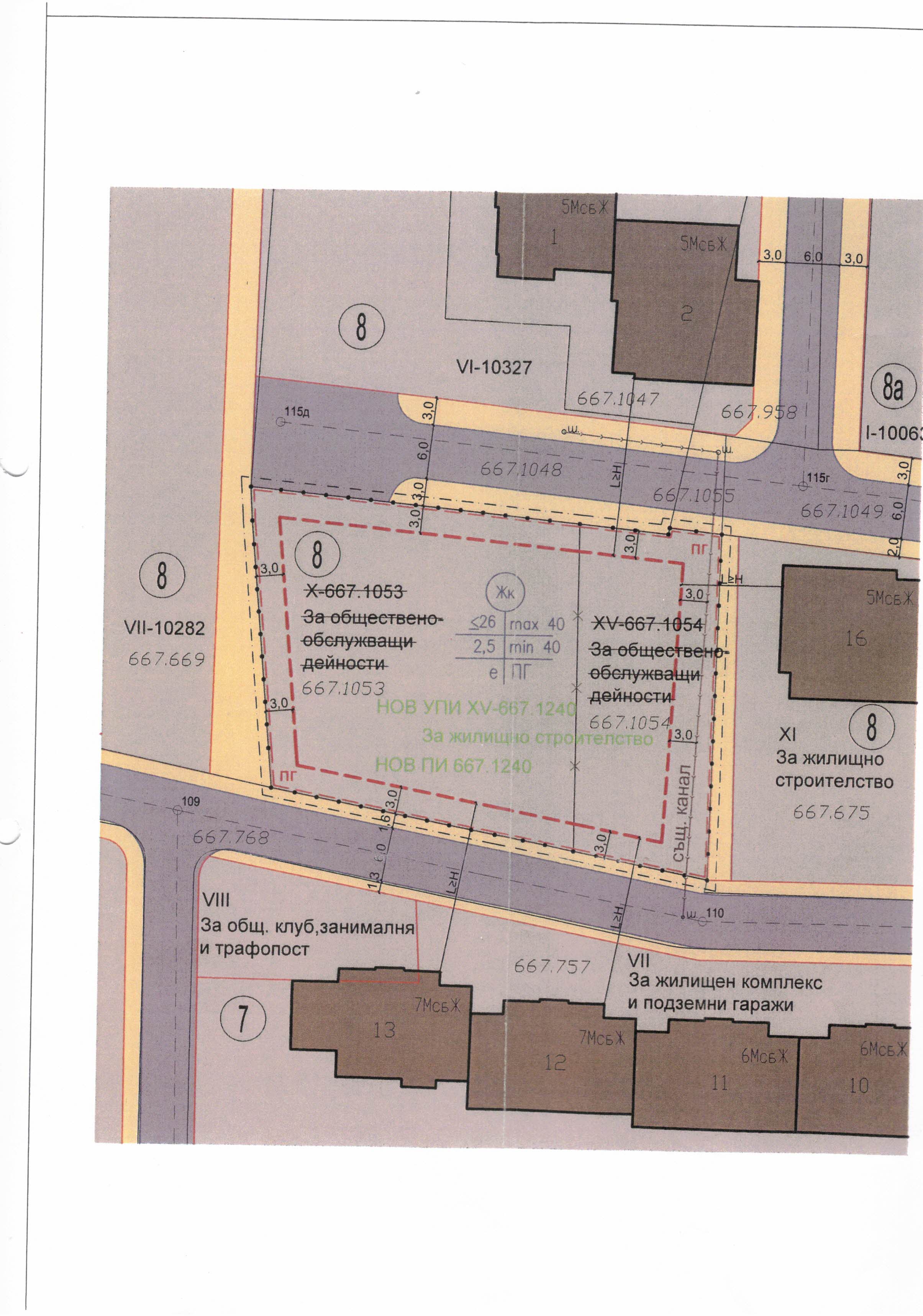 Изменение на действащия Подробен Устройствен План - План за Регулация и Застрояване за урегулиран поземлен имот Х-667.1053- За обществено обслужващи дейности и УПИ ХV.667.1054- За обществено обслужващи дейности кв. 8 и улица по ок 109 – ок 110 към ок 111 по плана на гр. Плевен.