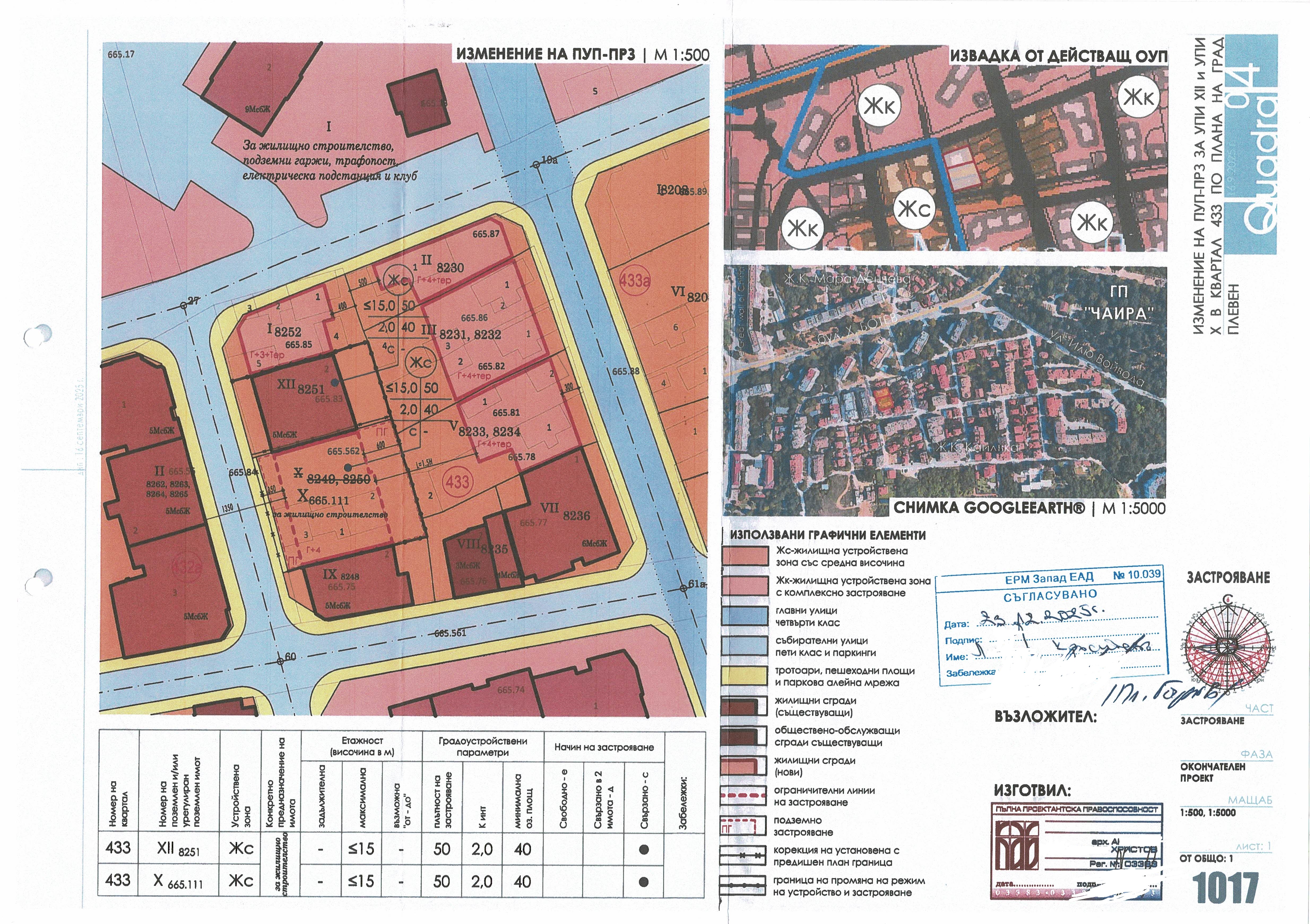 Изменение на Подробен Устройствен План – План за Регулация и Застрояване за УПИ Х и ХІІ, кв.433 по плана на гр. Плевен.