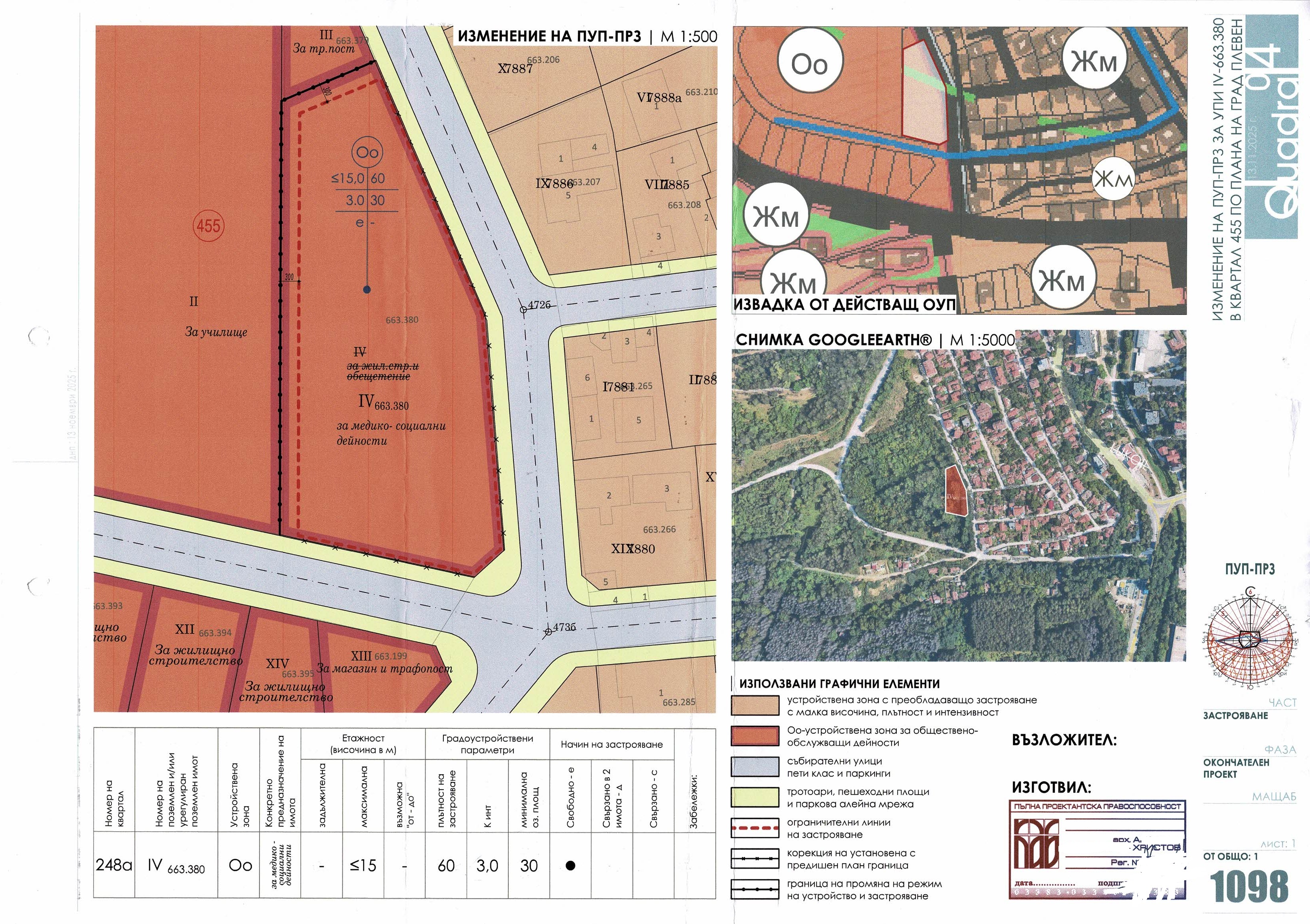 Изменение на Подробен устройствен план – План за регулация и застрояване за УПИ ІV-663.380, кв.455 по плана на гр. Плевен