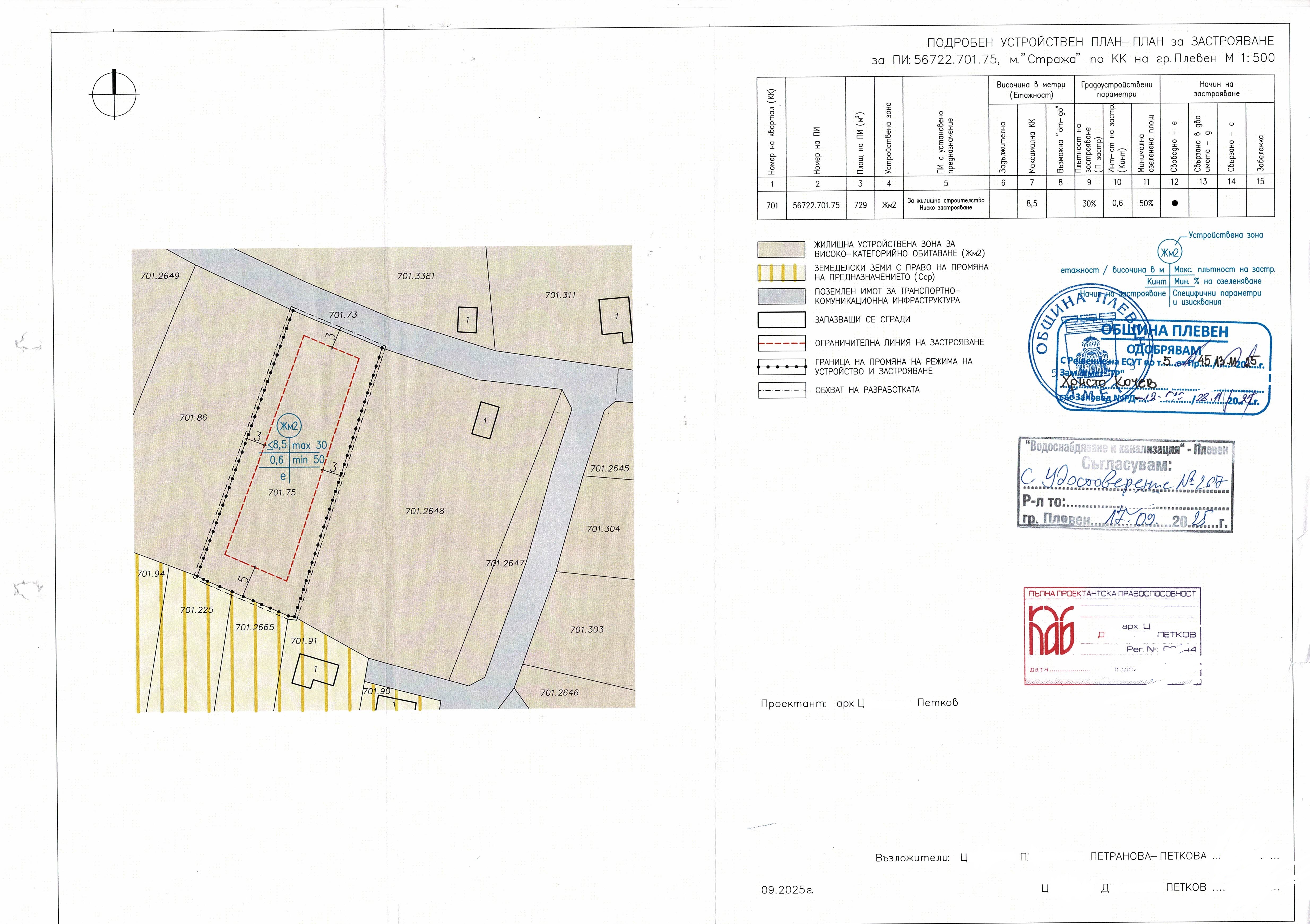 Подробен устройствен план -План за застрояване за поземлен имот с идентификатор 56722.701.75, м. „ Стража” в землището на гр. Плевен.
