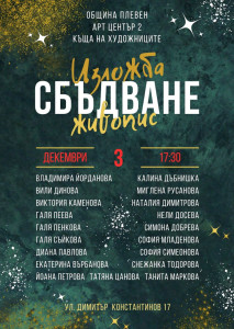 3 декември (сряда) - Изложба живопис „Сбъдване” на дамите от ателието с ръководител Владимира Йорданова. Откриване - 17.30 часа.