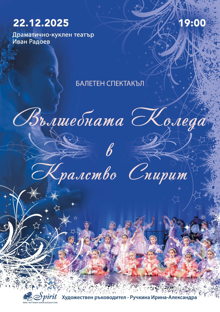 19:00 ч. - Балетен спектакъл „Вълшебната Коледа в Кралство Спирит“ - концерт на Балетно - театрална школа „Spirit“ с балетен педагог и хореограф Ирина Хаджиева. Място: ДКТ „Иван Радоев“;