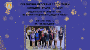 17.30 ч. - Ледено шоу на Спортен клуб по фигурно пързаляне „Ледени искри“. Място - Ледената пързалка на пл. „Възраждане“;