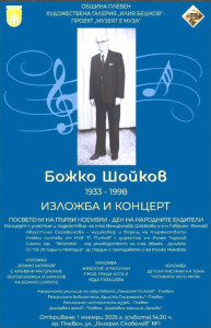 1 ноември (събота) – честване, посветено на плевенчанина, будителя, един от основоположниците на музикалното дело в Плевен - Божко Шойков. Чрез силата на различните изкуства ще бъде представен многопластовият артистичен дух на твореца, преподавателя, диригент, композитор Божко Шойков. На събитието ще чуете концерт с изпълнение на творби на будителя, ще разгледате документална изложба за живота и делото му, ще видите експозиция с творби на съвременните български художници проф. Греди Асса и Леда Паташева, както и детски рисунки на тема „Музиката е муза“. Начало – 14.30 часа.