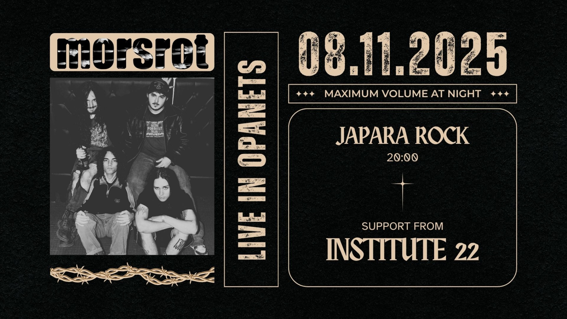 8 ноември (събота) - MORSROT (Берлин/Малта) превземат сцената на Japara Rock. Победители в Wacken Metal Battle Malta 2025 и първата малтийска банда, представяла страната на Wacken Open Air, Morsrot излизат на сцената на Japara Rock, с. Опанец, в 20.00 часа.