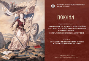 9 декември (вторник) - Представяне на каталог „Литографии от Руско-турската война 1877 - 1878 г. в художествената колекция на РВИМ - Плевен“ и откриване изложба с литографии от фонда на музея. Начало - 16.00 часа.