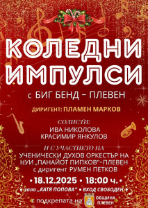 18,00 часа - Коледен концерт на Общински духов оркестър, място - зала „Катя Попова“