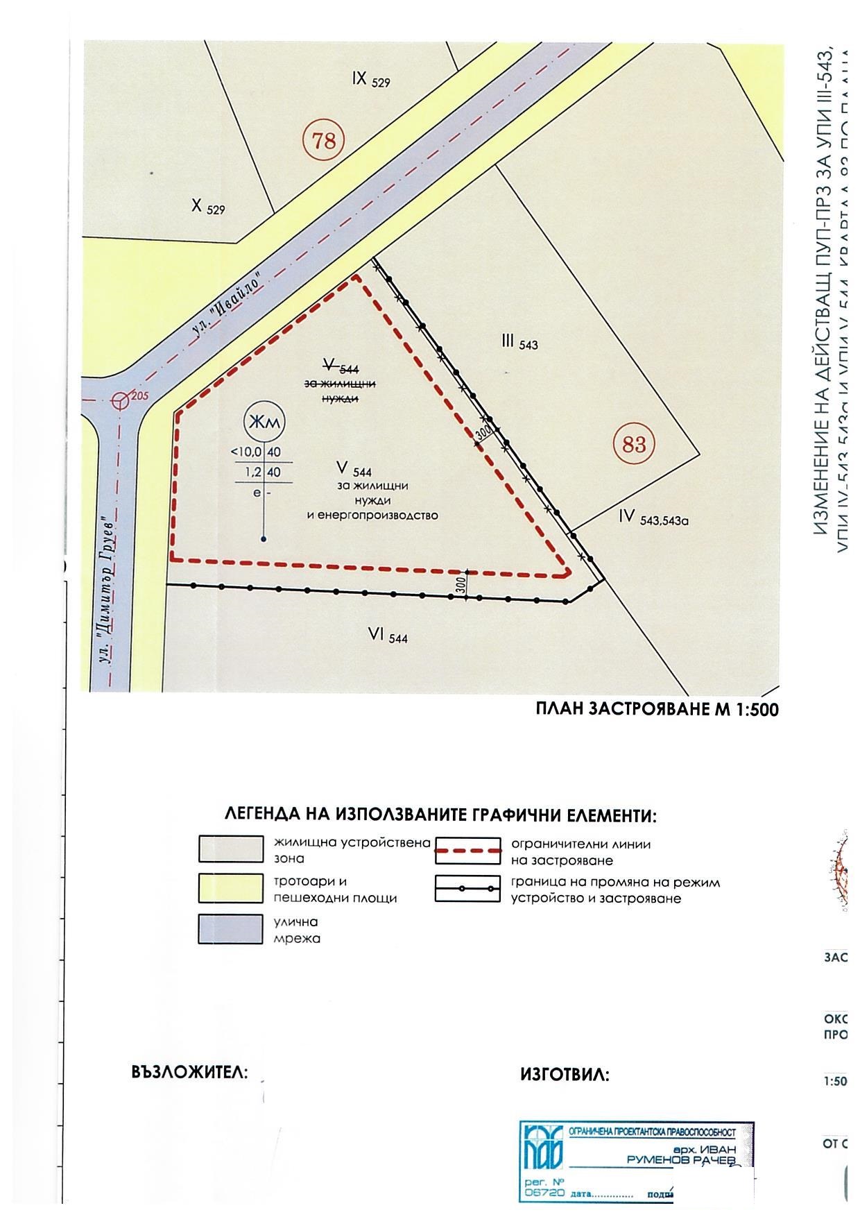 Изменение на Подробен устройствен план - План за регулация и застрояване за урегулирани поземлени имоти V-544 и II-544, III-534, IV-543,543а, VI-544 в кв.83 по плана на с. Върбица, общ. Плевен.