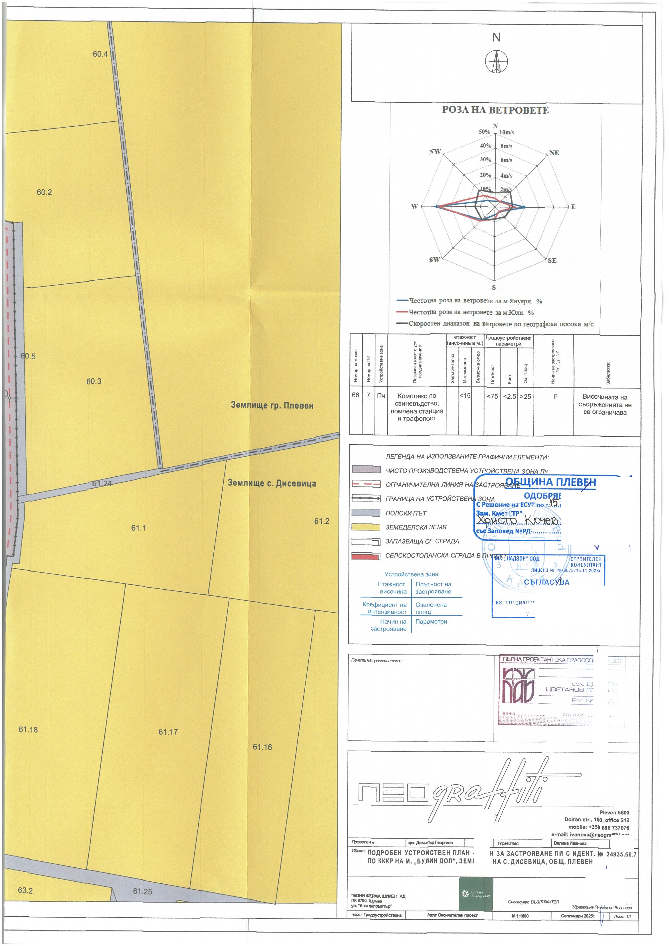 Комплексен проект за инвестиционна инициатива по чл.150 от ЗУТ, състоящ се от План за застрояване за поземлен имот 24935.66.7, м. „Булин дол“ в землището на с. Дисевица, одобрени проекти и разрешение за строеж: №2/06.01.2026 г. за обект: „Стопанска сграда – обор за отглеждане на животни” в ПИ с идентификатор 24935.66.7, м. „Булин дол“ в землището на с. Дисевица, общ. Плевен,