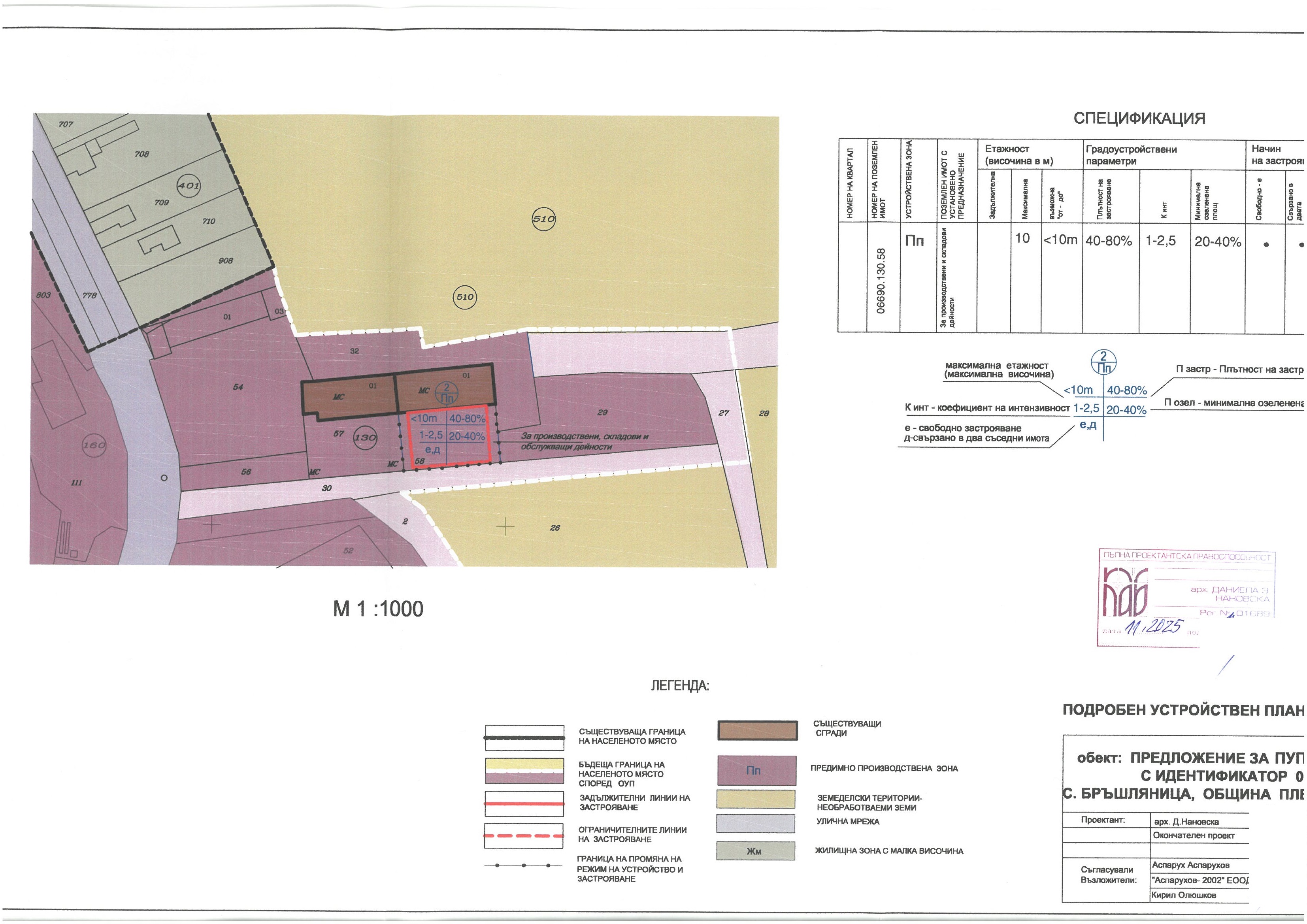 Изменение на Подробен устройствен план - План за застрояване за поземлен имот с идентификатор 06690.130.58, местност „Шипкин дол“ в землището на с. Бръшляница, общ. Плевен.