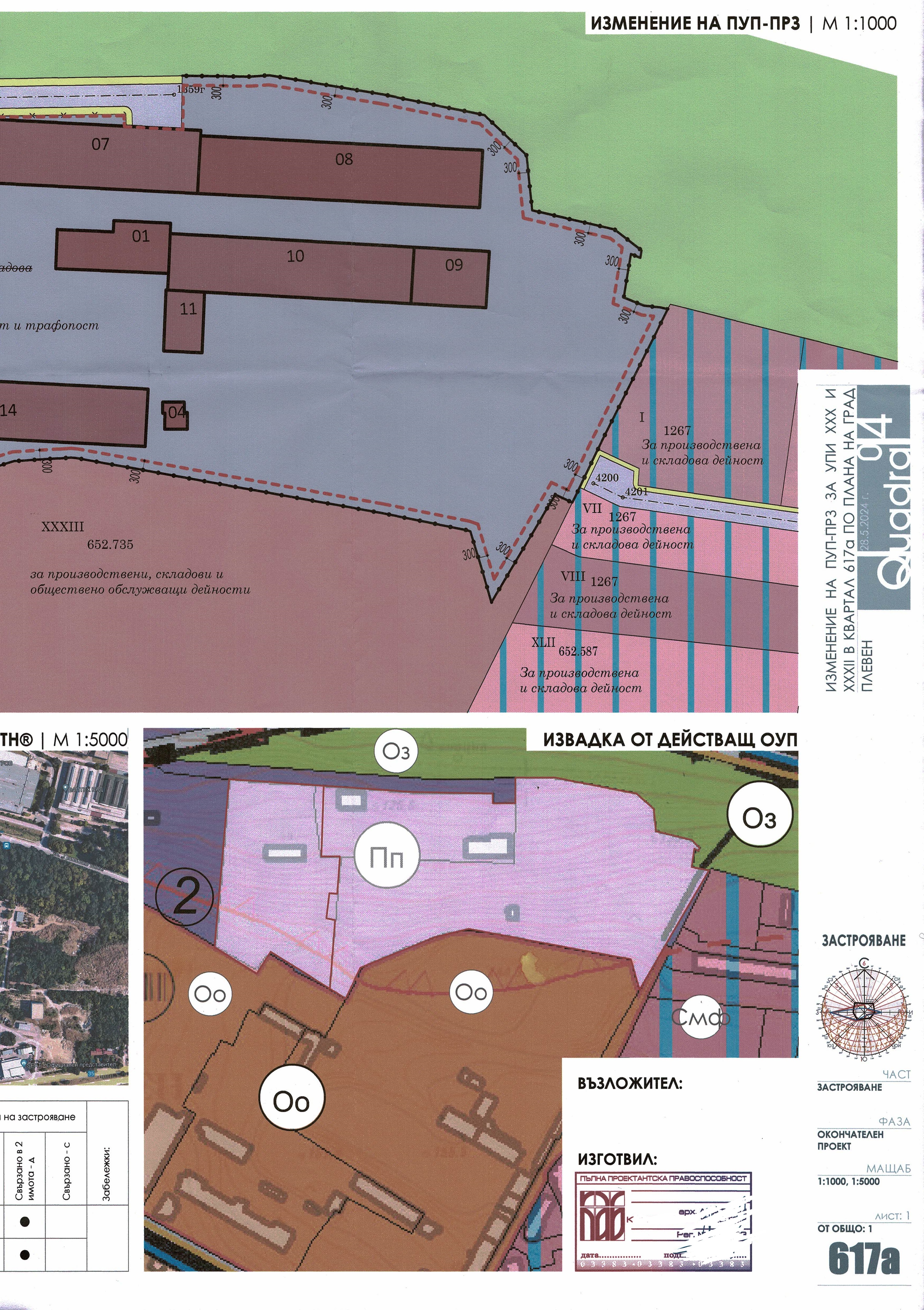 Изменение на Подробен устройствен план-План за регулация и застрояване за урегулирани поземлени имоти XXX-1270 и XXXII-652.721 в кв. 617а по плана на гр. Плевен.