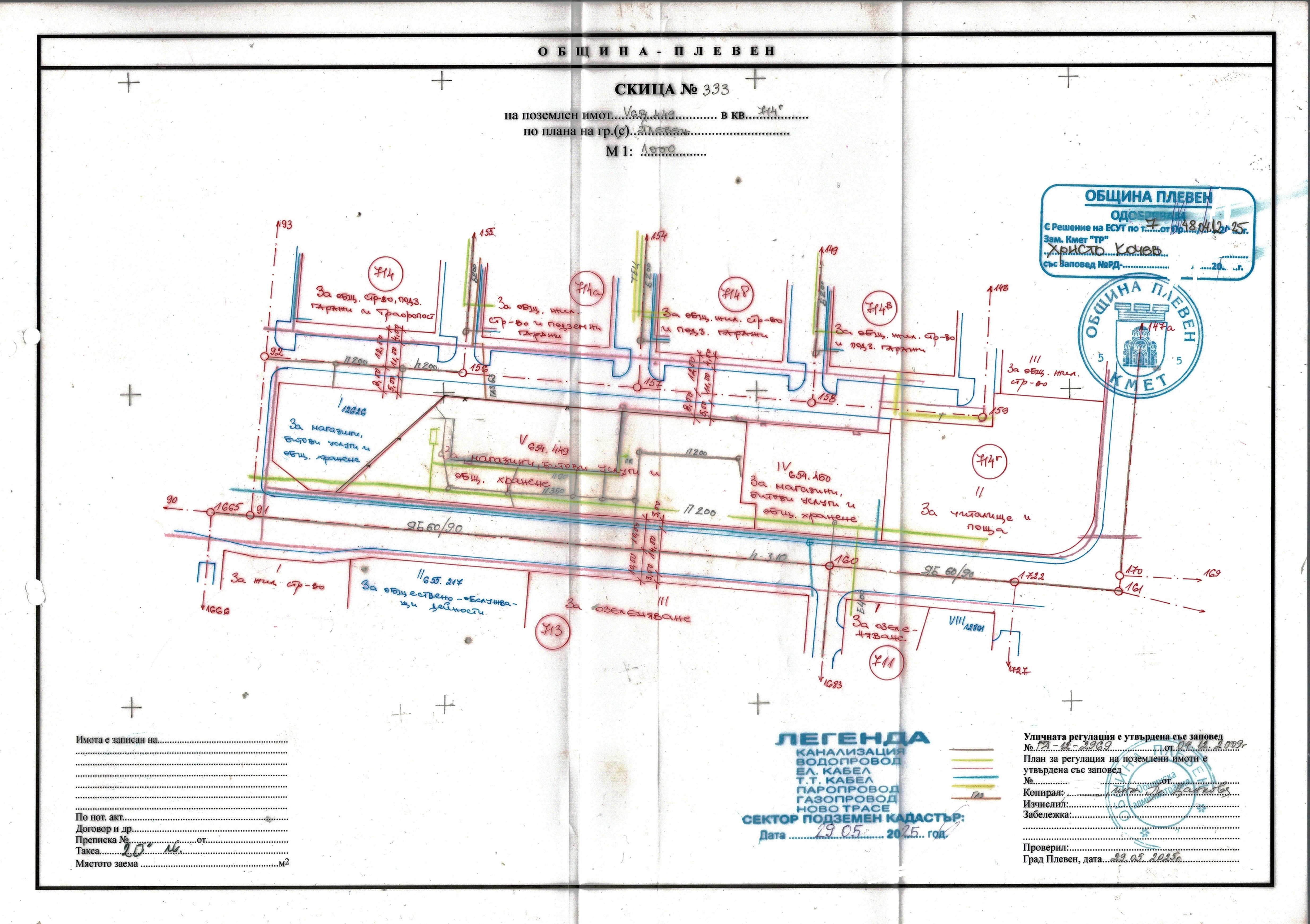 Община Плевен, на основание чл. 150, ал.8 и чл.129, ал.2 от Закона за устройство на територията съобщава, че със заповед № РД-12-636/15.12.2025г. на Зам. Кмета на Община Плевен е одобрен:
