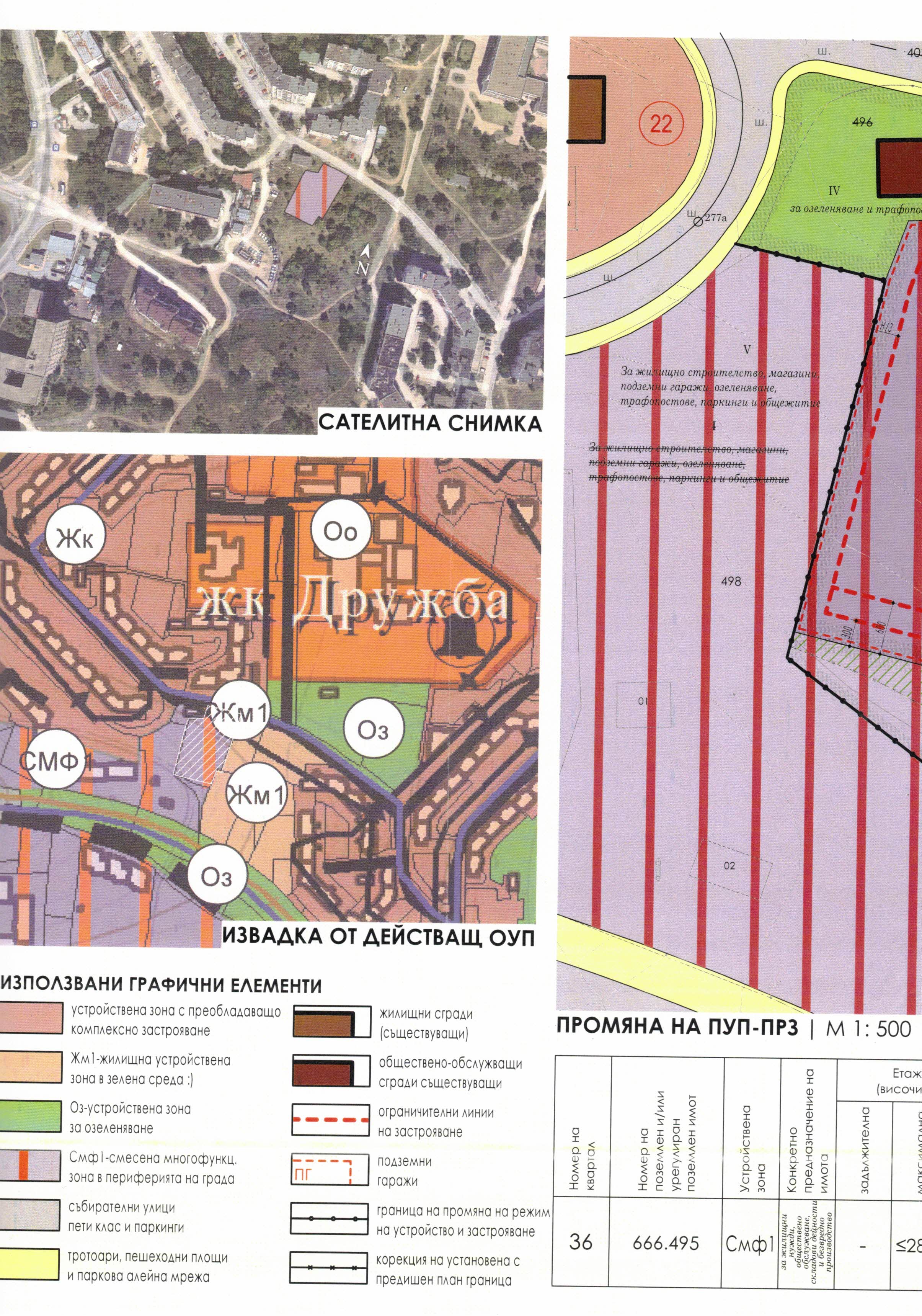 Изменение на действащия Подробен Устройствен План - План за Регулация и Застрояване за урегулирани поземлени имоти I-За жилищно строителство, магазини, подземни гаражи, озеленяване, трафопостове, паркинги и общежитие, кв. 36 по плана на гр. Плевен .