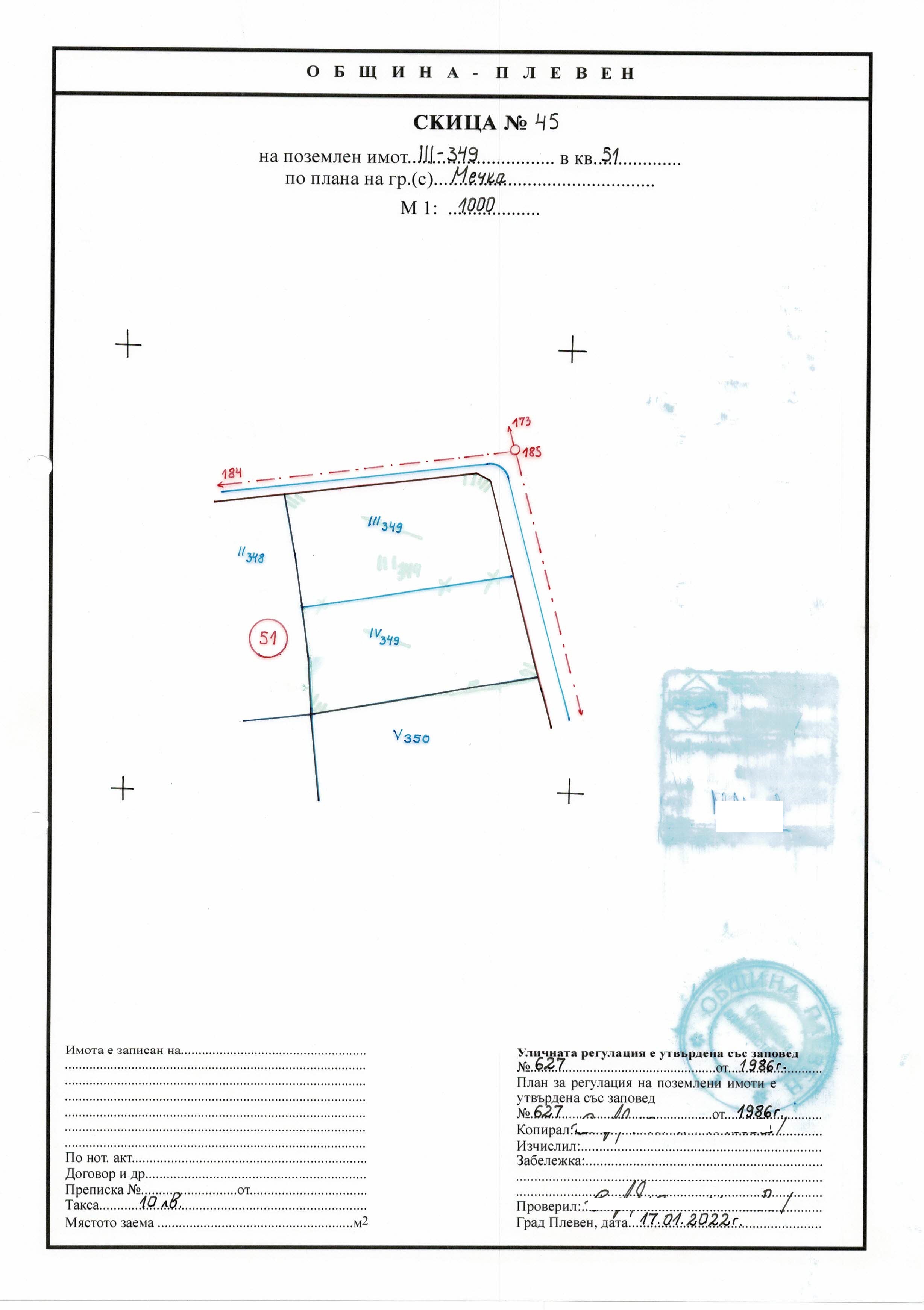 Община Плевен, на основание чл.128, ал.3 от Закона за устройство на територията, съобщава на заинтересованите собственици на поземлени имоти с идентификатори 47963.501.745, 47963.501.744 и 47963.501.350, 47963.501.348 кв.51 по плана на с.Мечка, че е изработен проект за: