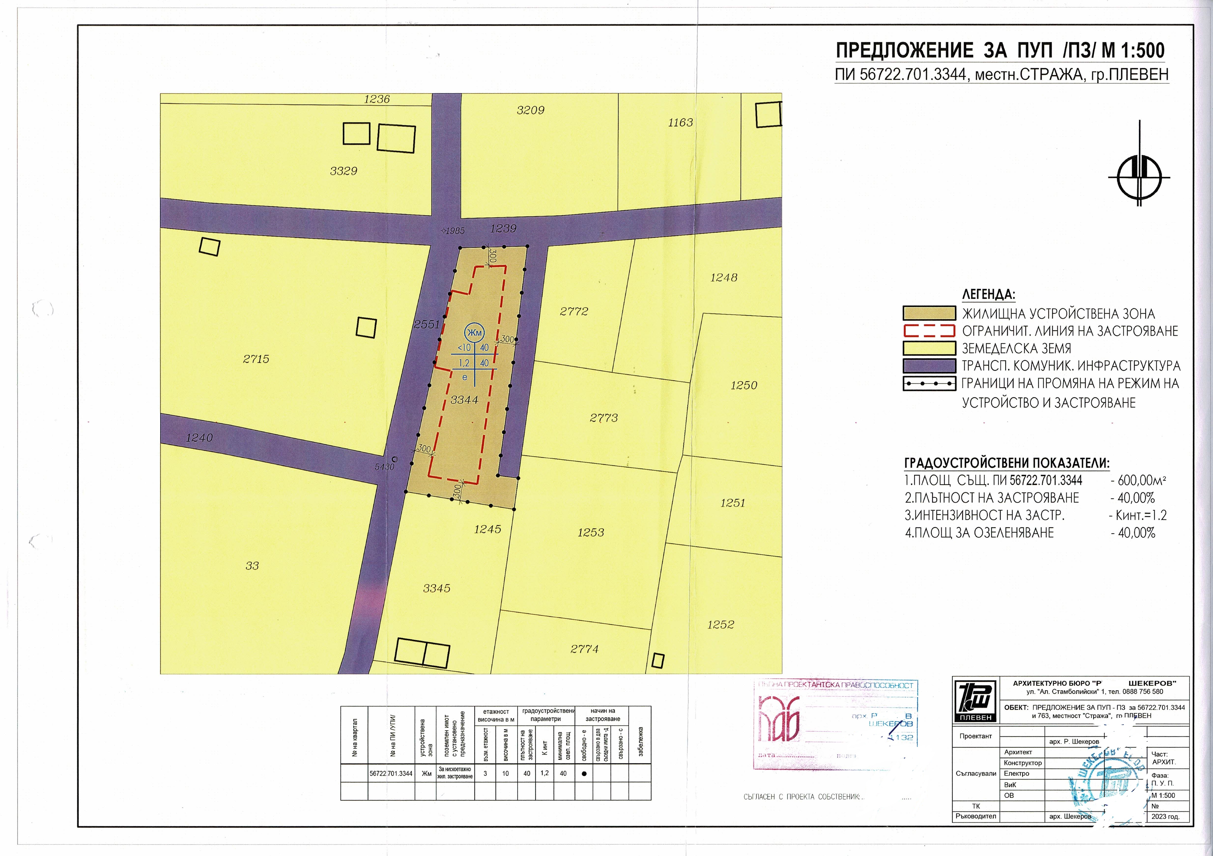 Подробен Устройствен План – План за Застрояване за ПИ с идентификатор 56722.701.3344 намиращ се в местността „Стража” в землището на гр. Плевен.