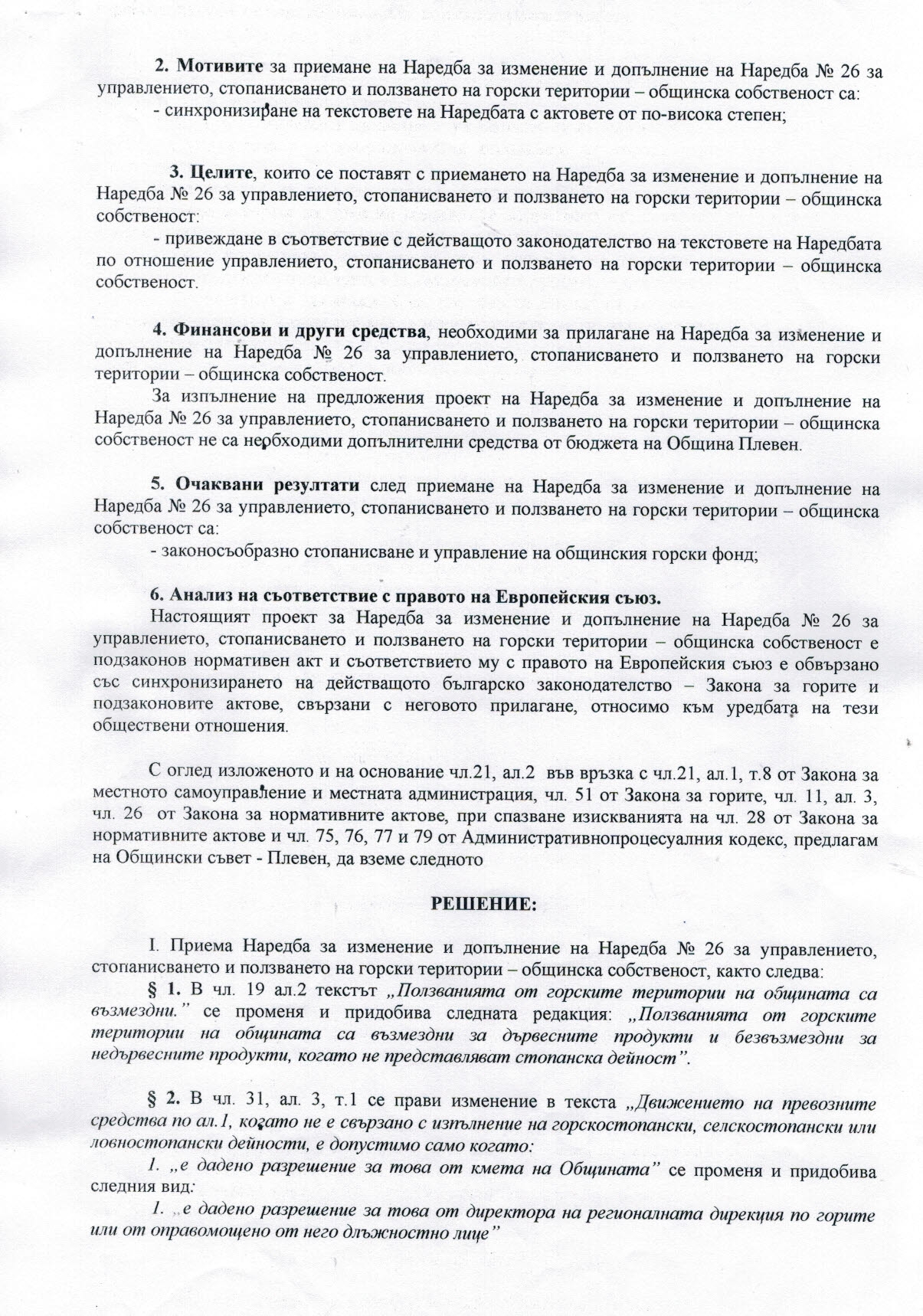 Предложение за изменение на текст на Наредба № 26 за управление, стопанисване и ползване на горски територии – общинска собственост вторник, 02 юли 2019 3339 Файлове: Izm. naredba26_.doc 001.JPG 002.JPG 003.jpg