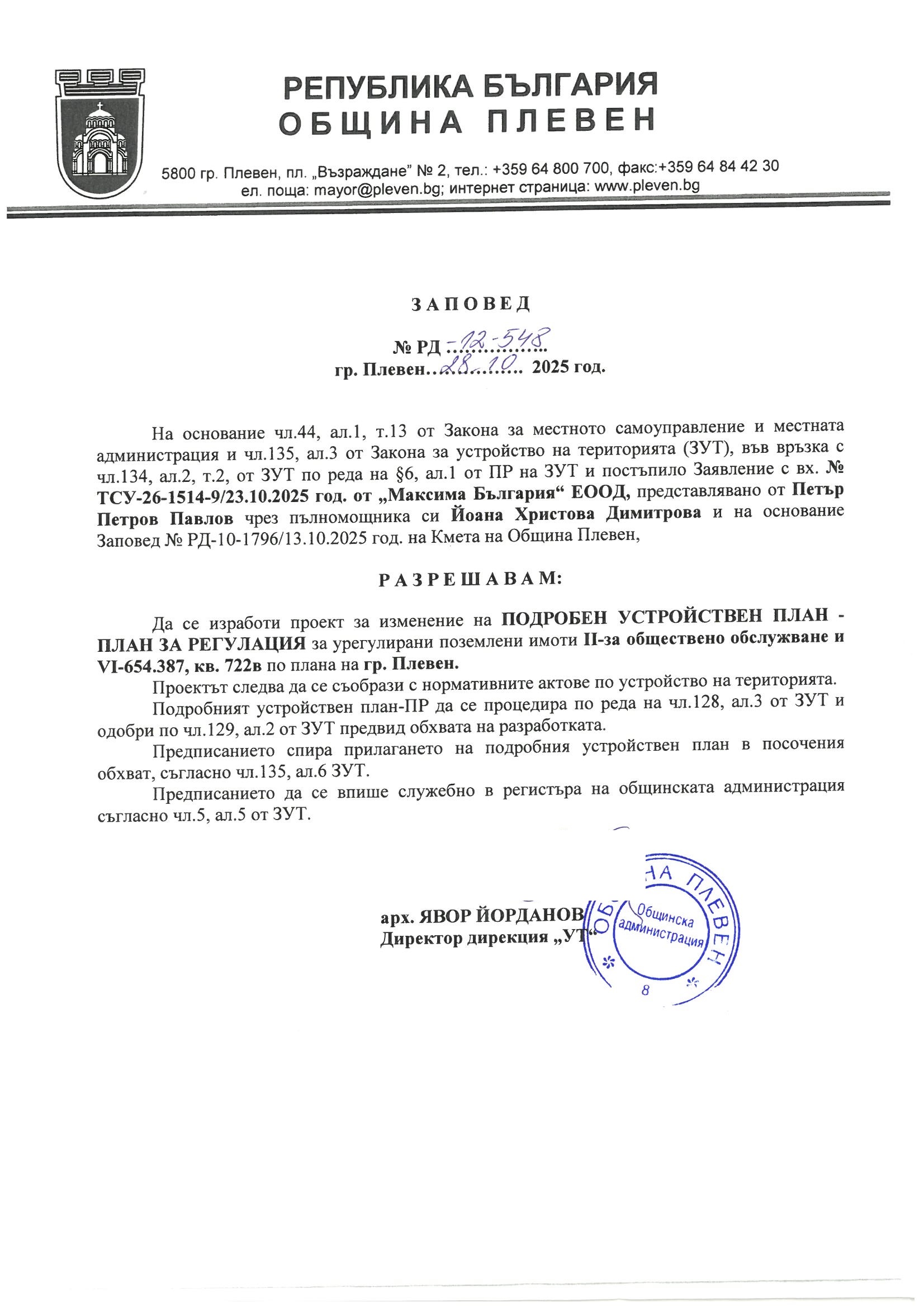 О Б Я В Л Е Н И Е ТСУ-30-1978-299/28.10.2025 год. сряда, 29 октомври 2025 110 Файлове: Заповед за разрешаване ПУП-ПР кв. 722в Плевен_.jpg Предложение за ПУП-ПР кв. 722в Плевен_.jpg
