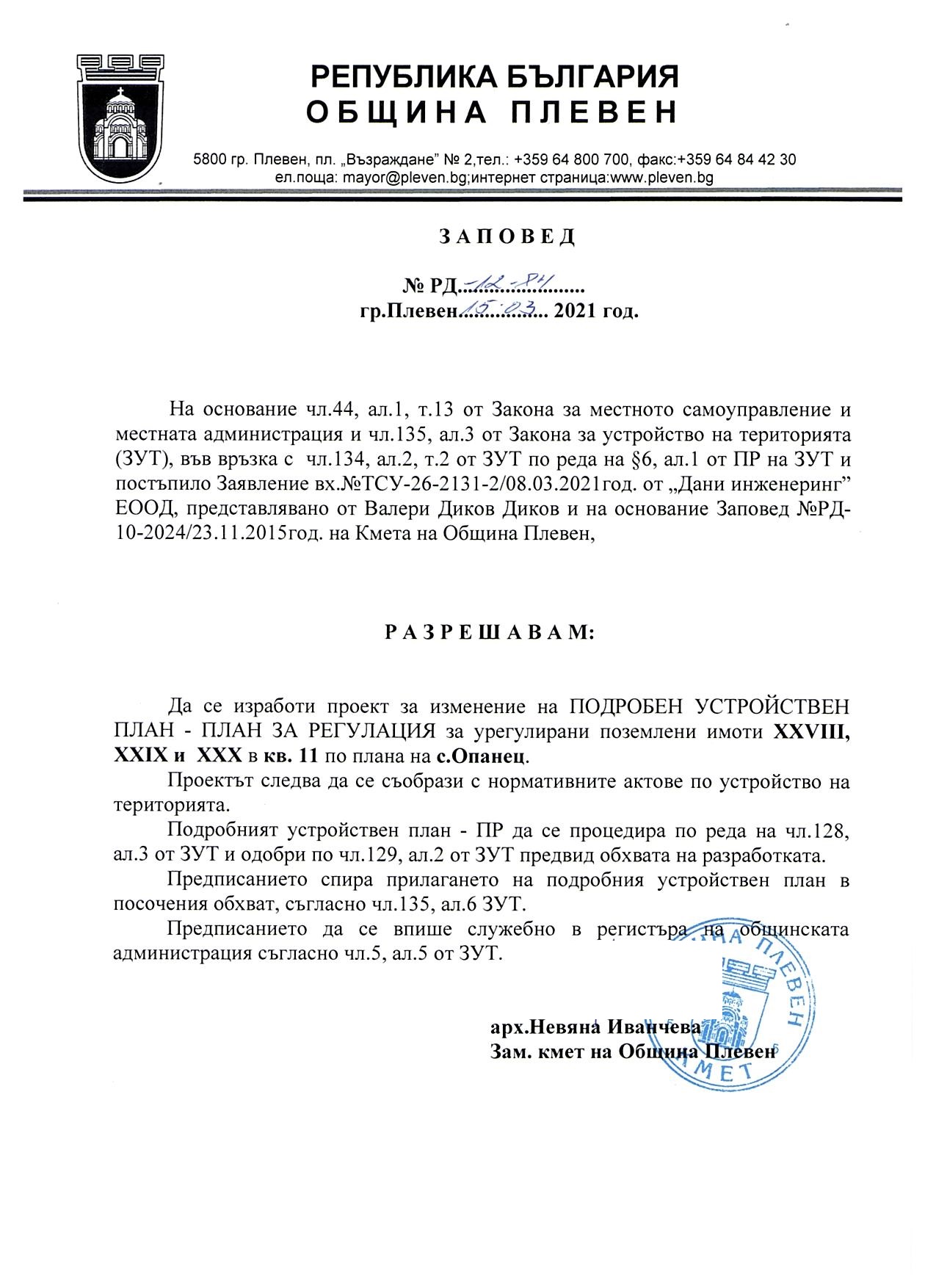 О Б Я В Л Е Н И Е № ТСУ-30-427-1/17.03.2021 г. сряда, 17 март 2021 1428 Файлове: Заповед.jpg Скица.jpg
