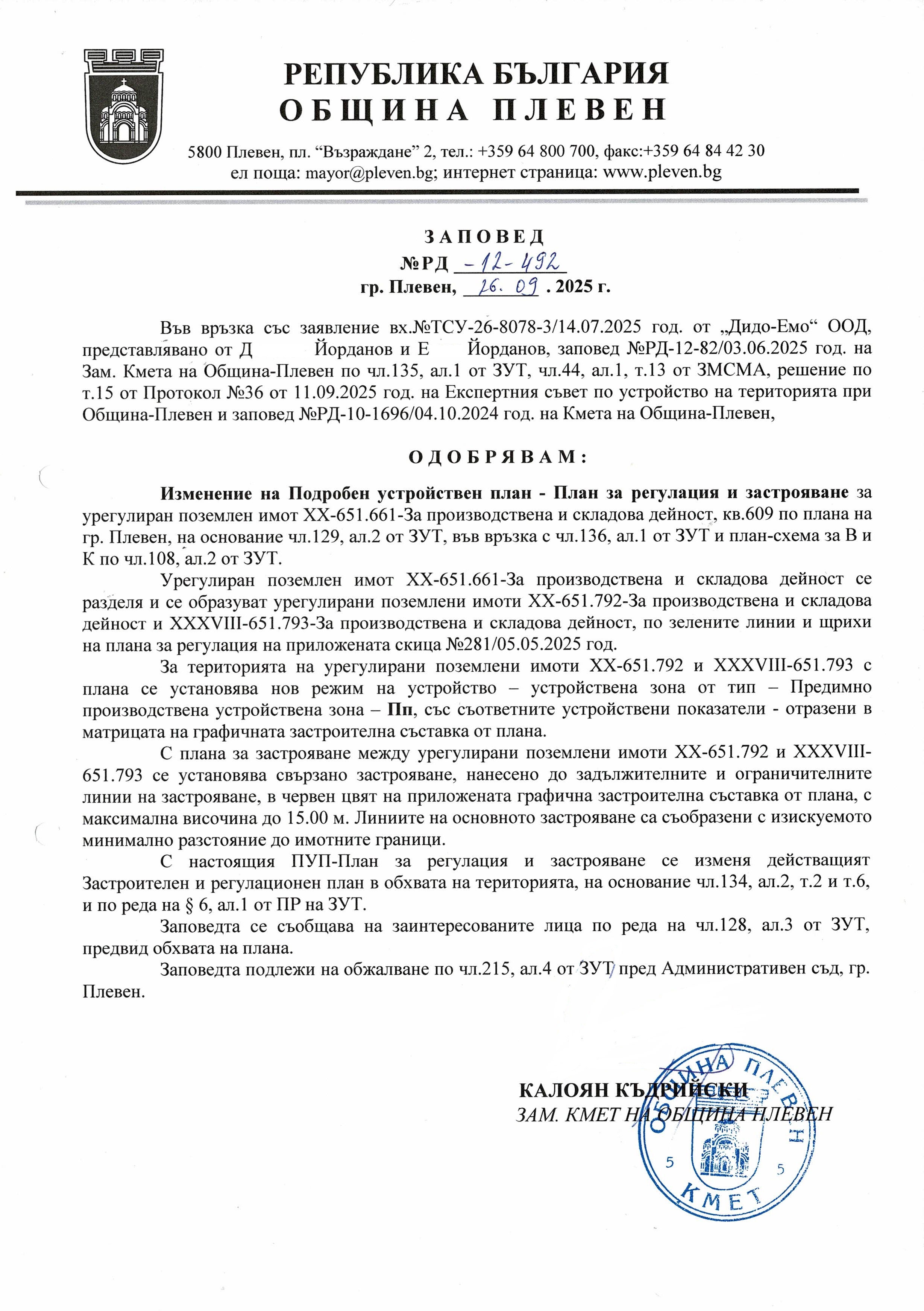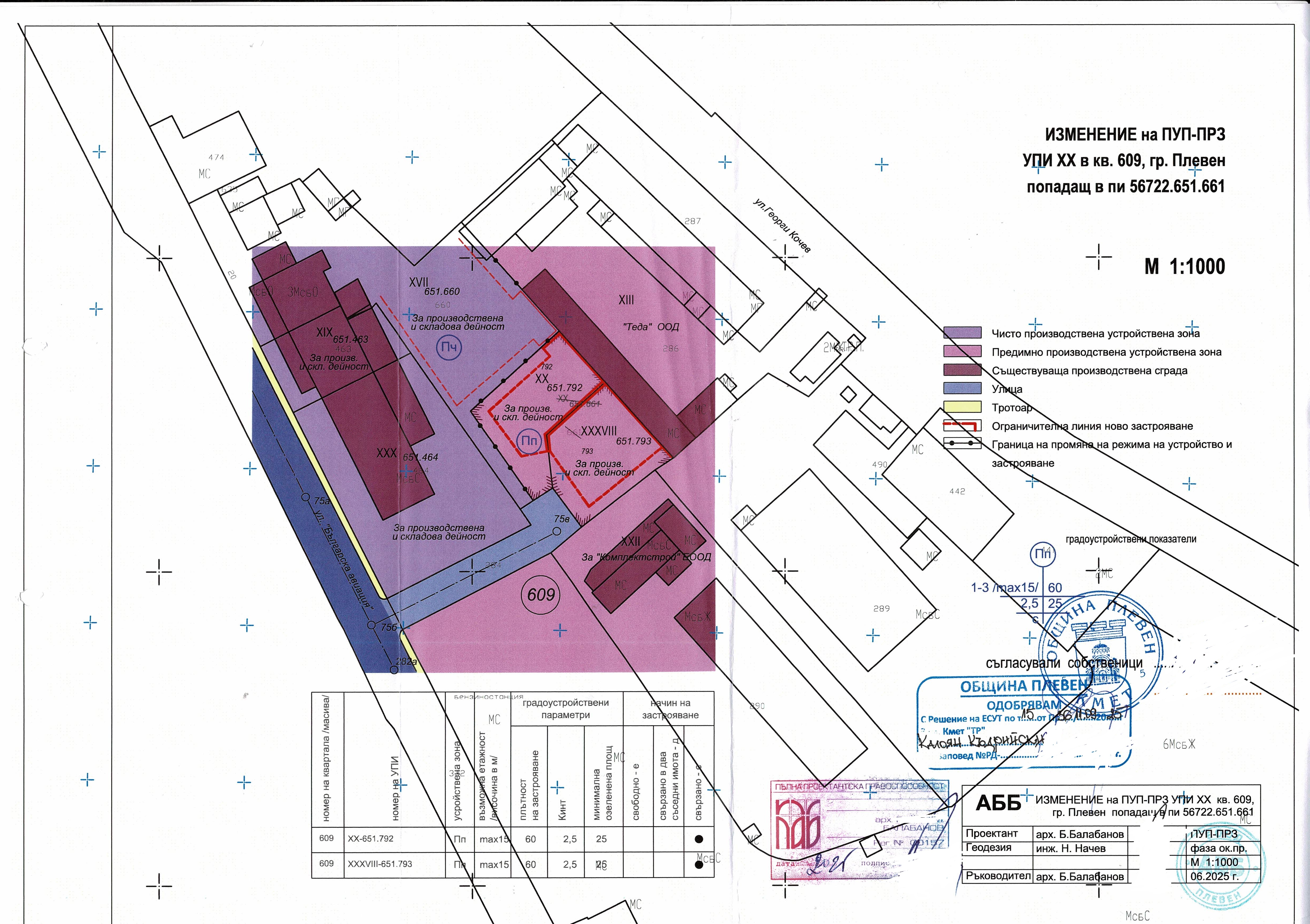 ОБЯВЛЕНИЕ № ТСУ-30-1978-271 гр. Плевен, 26.09.2025г. понеделник, 29 септември 2025 131 Файлове: Регулационна скица, кв.609_.jpg ПУП-План за регулация и застрояване, кв.609_.jpg Заповед, кв.609_.jpg