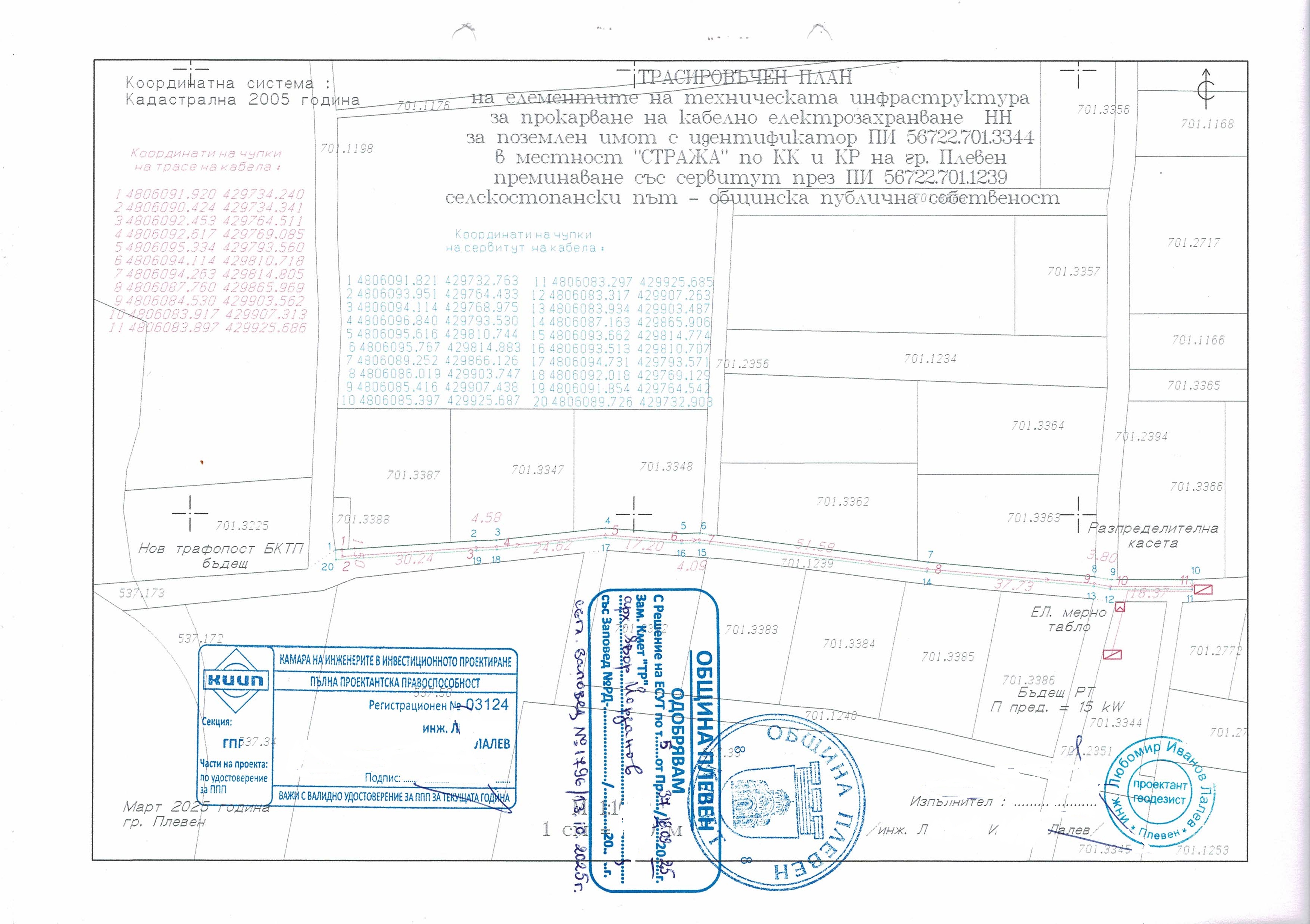 ОБЯВЛЕНИЕ №ТСУ–30-1978-292 гр. Плевен, 22.10.2025год. сряда, 22 октомври 2025 77 Файлове: ПУП-Парцеларен план.jpg Трасировъчен план.jpg Заповед, ПИ 701.3344_.jpg